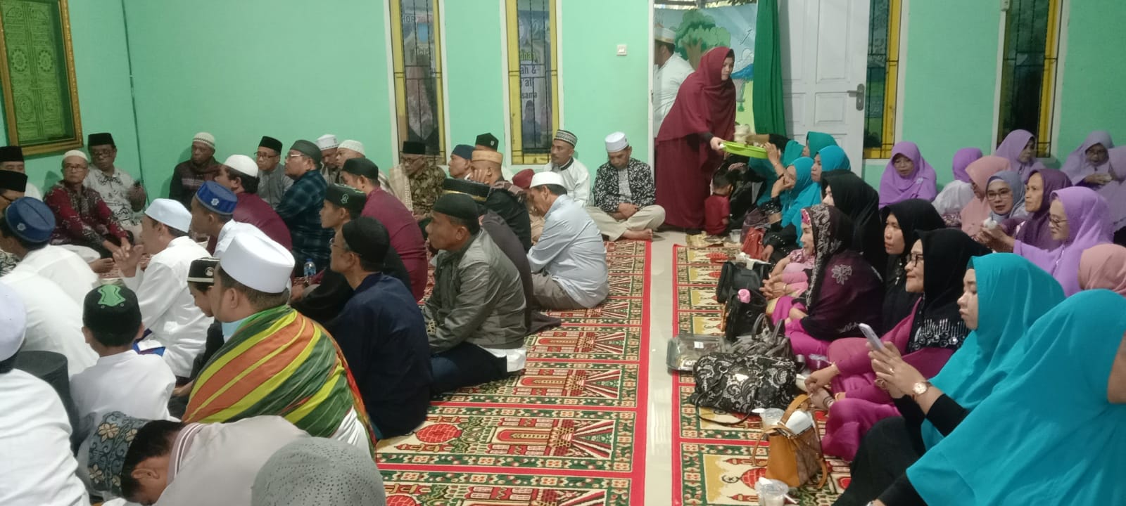 Dengan Tema ‘Marilah mencintai Rasulullah SAW Dengan Menghidupkan Sunnahnya’, Acara bertambah khidmad dengan mendengarkan tausiah yang disampaikan oleh K.H. Jainul Alam.