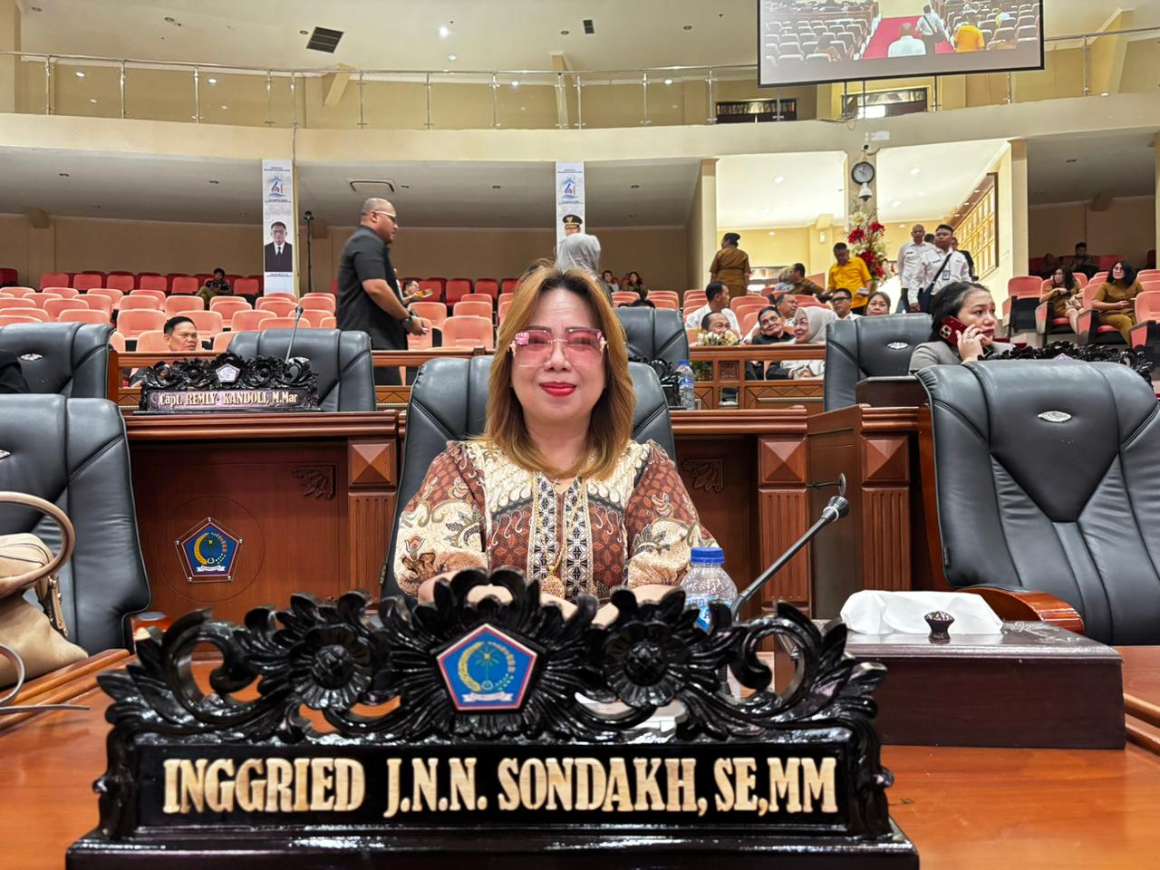 DEPROV,UpdateSulut — Apresiasi yang tinggi disampaikan srikandi Sulut Inggrid Sondakh kepada Gubernur Sulut Yulius Srlvanus Komaling saat interupsi dalam rapat paripurna DPRD, Senin (27/10/2025).